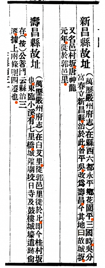 三国吴黄武四年(公元225年),析富春立新昌县,设治于永平乡花园坪。55年后的西晋武帝太康元年(公元280年),新昌县改名为寿昌县,驻地邑村,也叫古城畈。大同邑村的城隍庙(民国《寿昌县志》:在县西六都